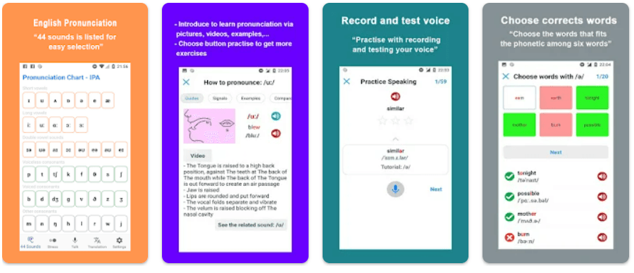 این اپلیکیشن برای تشخیص تلفظ دقیق جملات و کلماتِ زبان انگلیسی و سایر زبانها پیشنهاد میشود. با استفاده از این برنامه تشخیص استرس کلمات انگلیسی، ظرافتهای تلفظی، توانایی کنترل لحن، سرعت و حجم صدا ممکن است. امکان بارگذاری متن و شنیدن تلفظ جملات نیز در این اپلیکیشن وجود دارد.