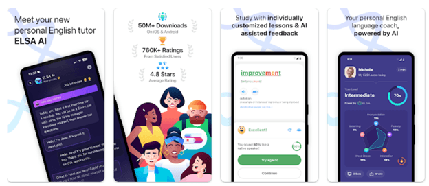 - اپلیکیشن السا دارای برنامههای درسی شخصیسازیشده است که هر فرد بهتناسب سطح و نیاز خود میتواند از آن بهره ببرد. بر اساس گزارشها این برنامه به کاربران امکان داده است تا میزان تلفظ خود را تا درصد زیادی به بومیان نزدیک کرده و درک قویتری نسبت به لهجهی آمریکایی پیدا کنند.