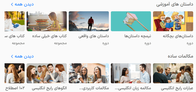 - داستانهای کوتاه و درسهای صوتی این برنامه دارای رونوشت است و با استفاده از آنها میتوانید میزان درک خود را ارزیابی کرده و ارتقا دهید.