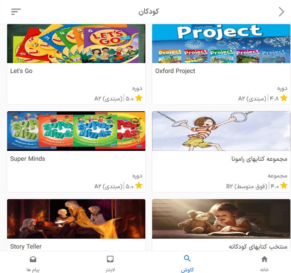 کتابهای کودکانهی انگلیسی در اپلیکیشن زبانشناس