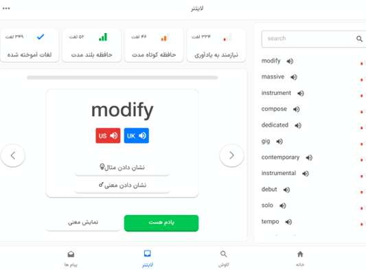 این منابع بیشمار تنها امکانات اپلیکیشن نیستند؛ بلکه ابزارهای جالب و پرکاربردی مثل لایتنر زبانشناس، یادآور مطالعاتی، امکان تنظیم برنامهی روزانه، پخش صدای گویندهی بومی برای هر یک از منابع و ترجمه فارسی فرایند یادگیری را شیرین و لذتبخش میکند.