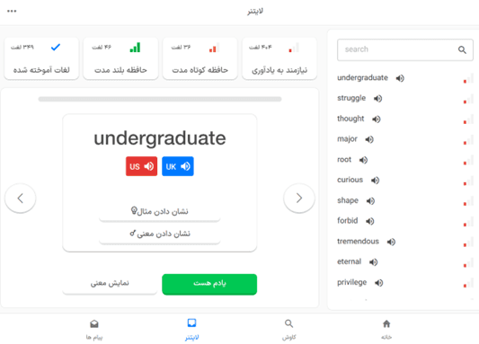 - جعبه لایتنر هوشمند؛ برای مرور منظم لغات