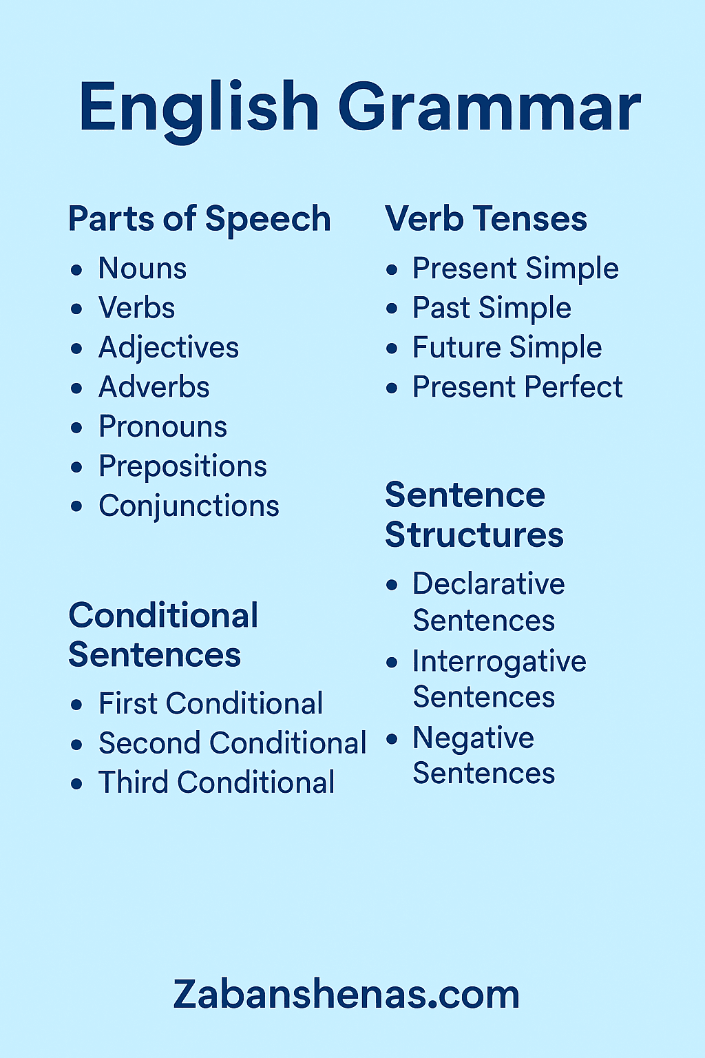 اصلی ترین گرامرهای انگلیسی در یک صفحه